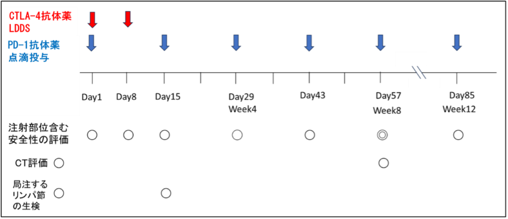• 本試験では安全性の確認を最優先の目的としつつ、腫瘍縮小や免疫応答の変化などの有効性指標を探索的に評価し、リンパ節標的免疫療法の臨床応用の可能性を探索します。